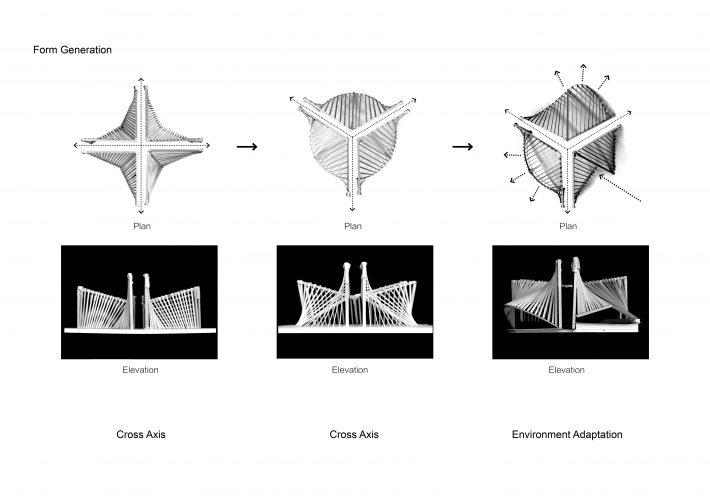 项目位于杭州亚运村南端中心商务区,在亚运会期间有着重要的展示作用。鉴于亚运会体育场馆作为建筑史中重要的一部分,其对跨度、场馆空间、标志性的追求,涉及到建筑形式、建筑结构和建筑建构体系的变革。建筑师从中获取灵感,希望使用者与城市居民能在这个示范区中发现充满时代气息的亚运元素。