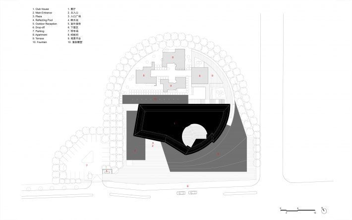 对我们来说作为杭州亚运会示范区的建筑设计是形式、结构、空间一体化思维的升华。在建筑周边的环境并不是最佳,景观面有限且场地较为平缓的现实情况下,我们没有强求与周边环境融合,而是更多考虑如何通过建筑设计和独特的语汇来提升场地气质与感受。最终建筑整体的韵律感和力量感也完美阐释了业主对于杭州的城市精神和2023年亚运会的体育精神。