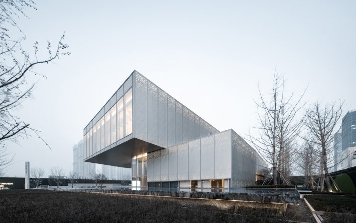 项目总体定位为集文化、科技、创意、功能于一体的城市客厅,作为规划中的核心空间节点,建筑师希望打造具有独特性和标志性的建筑空间。长江文化中心既是商业和艺术生活的载体,也作为武汉未来具有独特识别性的文化地标。方案以“江畔晶石”为概念,清晰的建筑体块,通透的穿孔不锈钢铝板作为建筑表皮,就像一个被精巧切割的水晶,展现出业主所推崇的低调、典雅、高尚的企业文化与生活方式,以及市民商业生活多彩斑斓的不同位面。